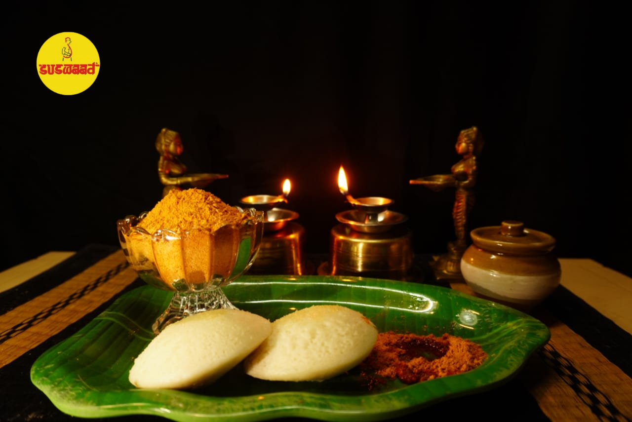 Suswaad Idly Milagai Podi (Plain) is prepared using a traditional South Indian family recipe that brings together roasted urad dal, chana dal, red chillies, sesame seeds, and a hint of hing. Every spoonful is aromatic, flavorful, and true to the homely taste you grew up with.